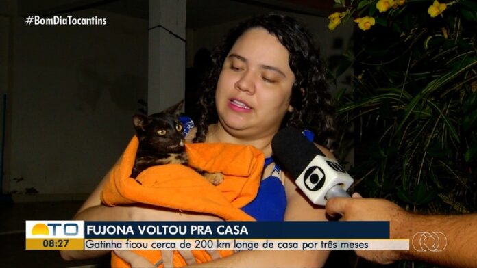 Os tutores de uma gatinha que estava desaparecida há três meses foram surpreendidos com o retorno da fujona, que escapou durante uma viagem a mais de 200 km de distância da casa da família, em Palmas.