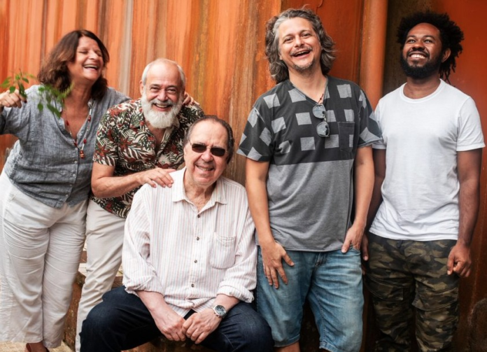 Edu Lobo (de óculos) posa com o grupo Pife Muderno na gravação do álbum ‘Edu pife’