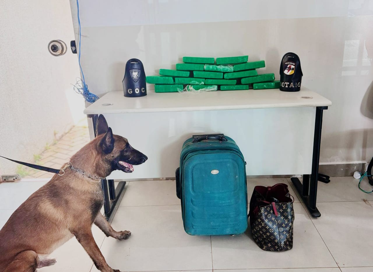 Homem flagrado com cerca de 10 kg de maconha dentro de mala, solta objeto ao avistar policiais e é preso