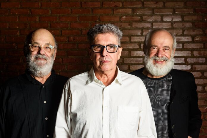Jaques Morelenbaum (à esquerda), Marcelo Costa (ao centro) e Carlos Malta formam o trio de música instrumental Trem de Três