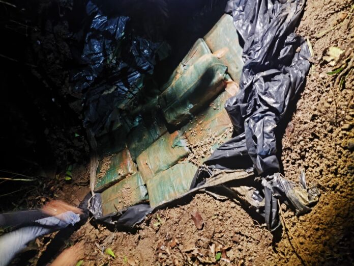 Cerca de 500 kg de cocaína foram encontrados enterrados na mata, em Dueré