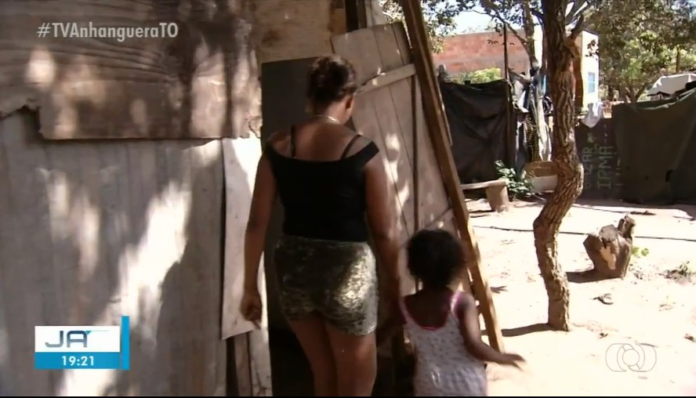 A Andressa da Silva é mãe de quatro filhos pequenos e vive em um barraco de lona em uma ocupação conhecida como Capadócia, na região sul de Palmas. Ela vivencia diariamente a dificuldade em ter acesso aos serviços públicos.
