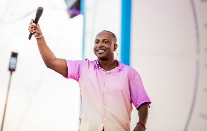 Thiaguinho na retomada da roda de samba ‘Tardezinha’ em 1º de abril no Parque Olímpico do Rio de Janeiro, palco da gravação do disco