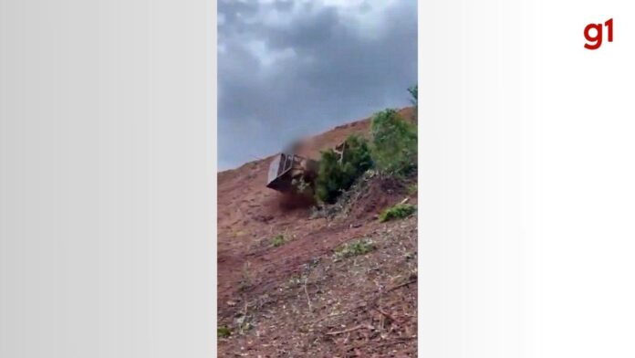 Vídeo mostra momento que trator capota, desce ribanceira rolando e mata tratorista
